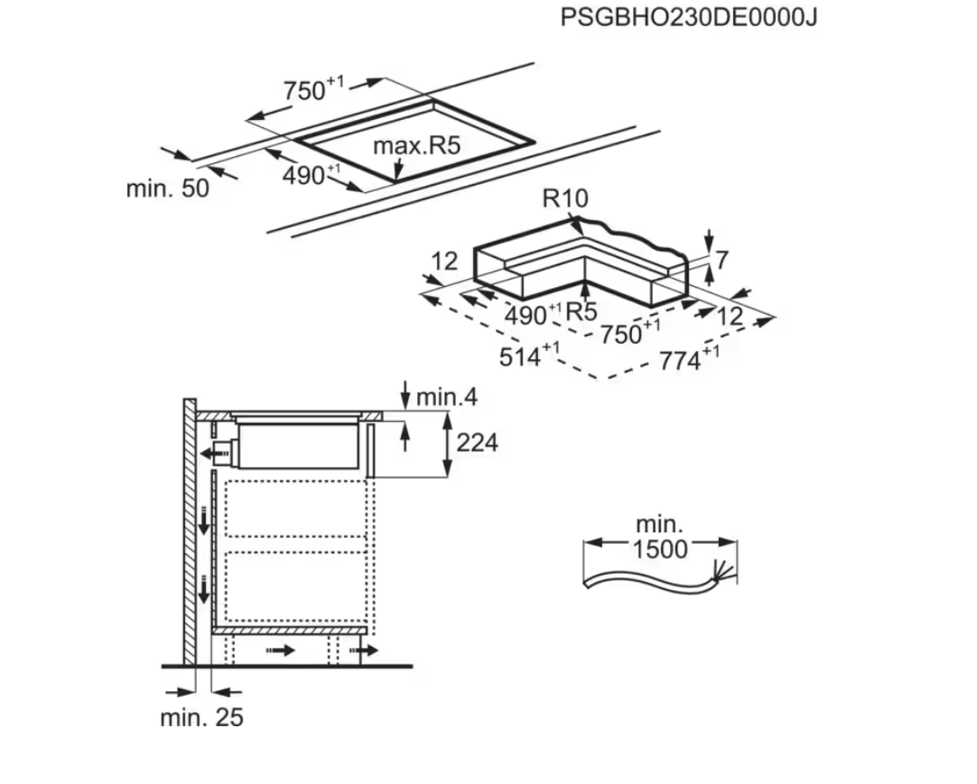 - Kochzone vorne rechts (kW / Ø cm): 1400/2500W/145mm