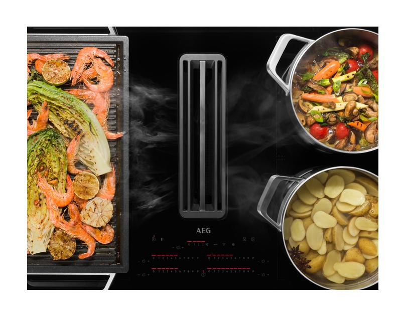 Mit der Kombination von Induktionskochfeld und einem leistungsstarken Dunstabzug sind Sie völlig frei in der Gestaltung Ihrer Küche - ohne Einschränkungen. Die funktionelle Formgebung entfernt Dampf und Gerüche zuverlässig genau dort, wo diese entstehen.