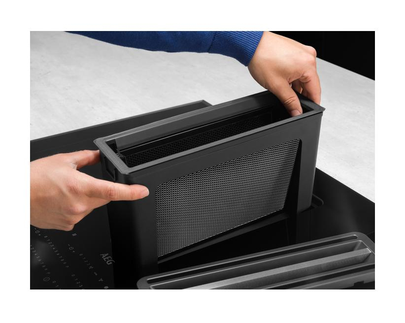 - 2-in-1-Filter – Kombination Aktivkohle- und Fettfilter zur Beseitigung von Gerüchen und Fette; spülmaschinengeeignet