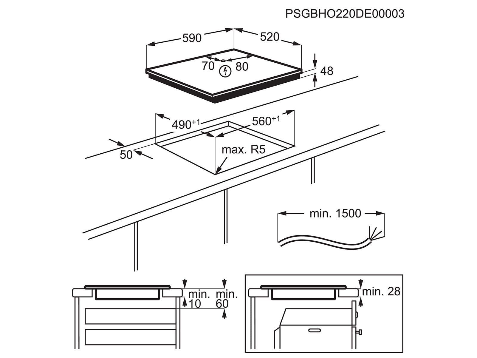 - Einbau-Maße: 48x560x490