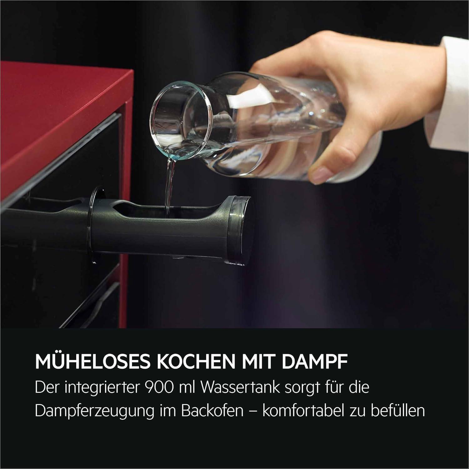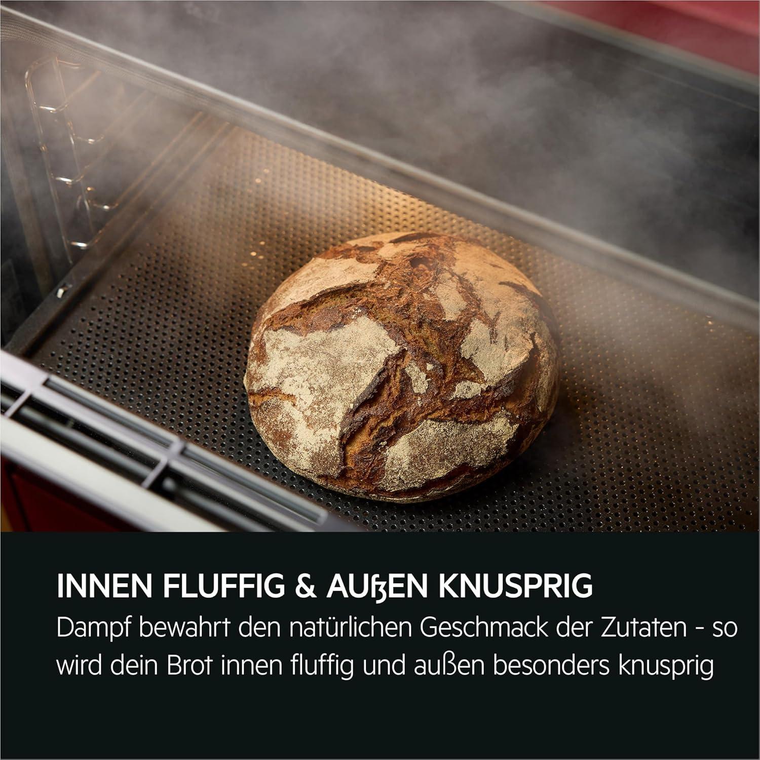 - SteamCrisp®: Kombiniert 25% Dampf mit Heißluft – außen knusprig, innen saftig