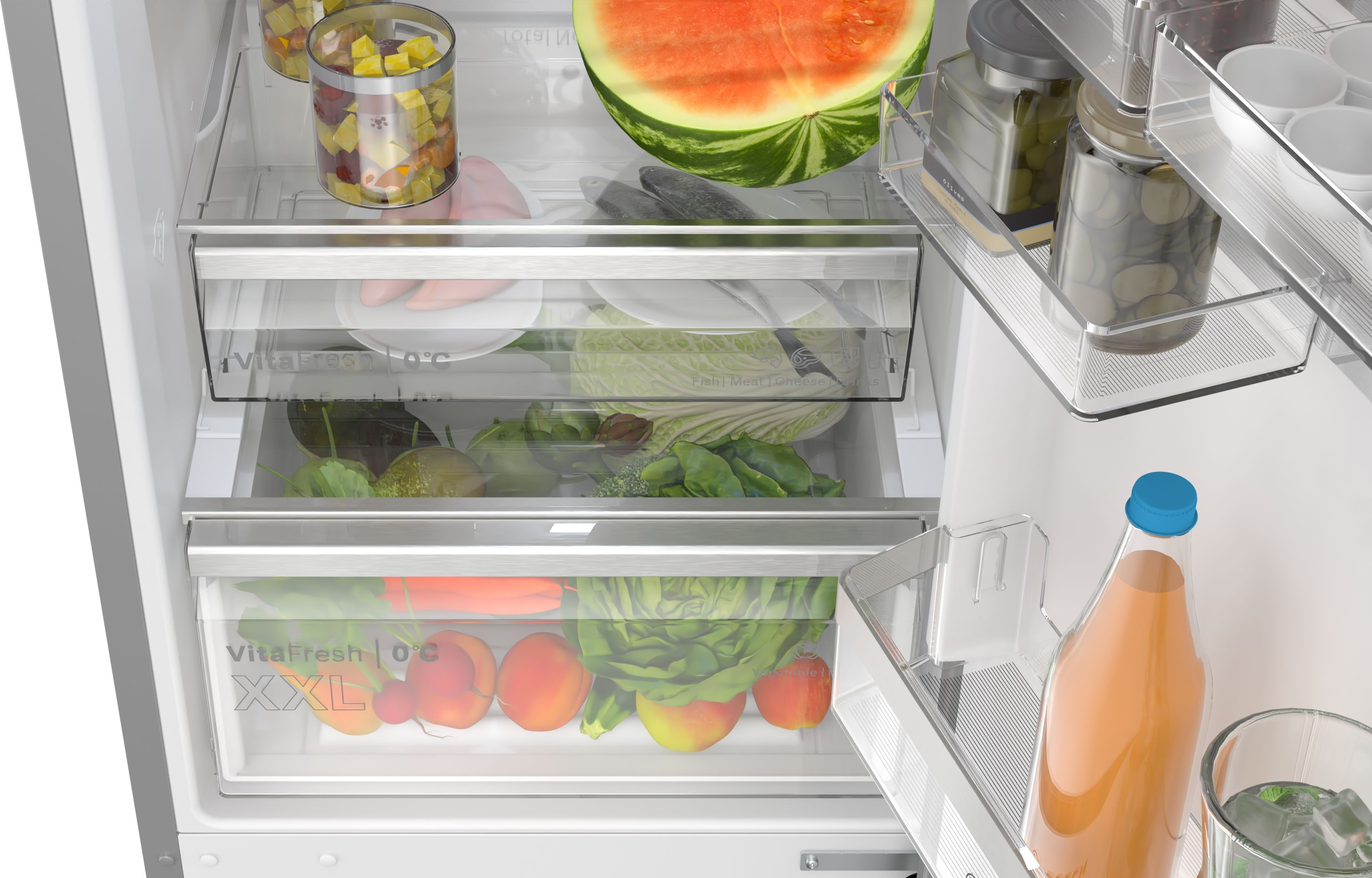 - 1 VitaFresh XXL Schublade mit automatischer Temperatur- und Feuchtigkeitsregulierung: hält Obst und Gemüse vitaminreich und länger frisch