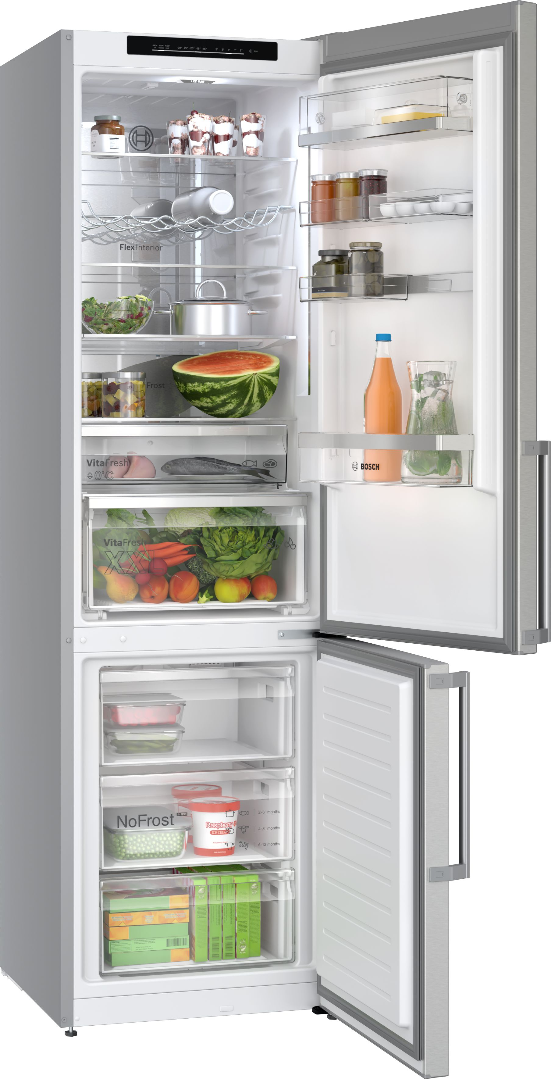 Produktinformationen "Bosch KGN39AIAU Serie 6 Stand Kühl-Gefrierkombination, 60 cm breit, 363 L, Total No Frost, Individuelle Temperaturregelung, Super Kühlen, Flex Shelf, Gebürsteter Stahl Anti-Fingerprint"