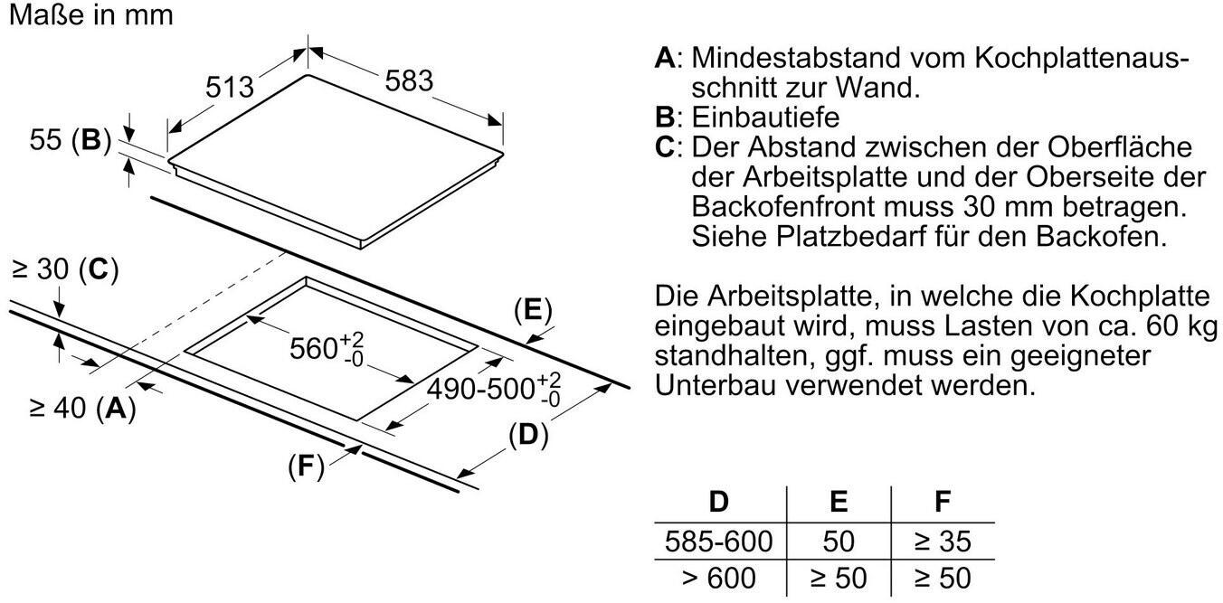 - Gerätehöhe über Arbeitsplatte 3,0 mm
