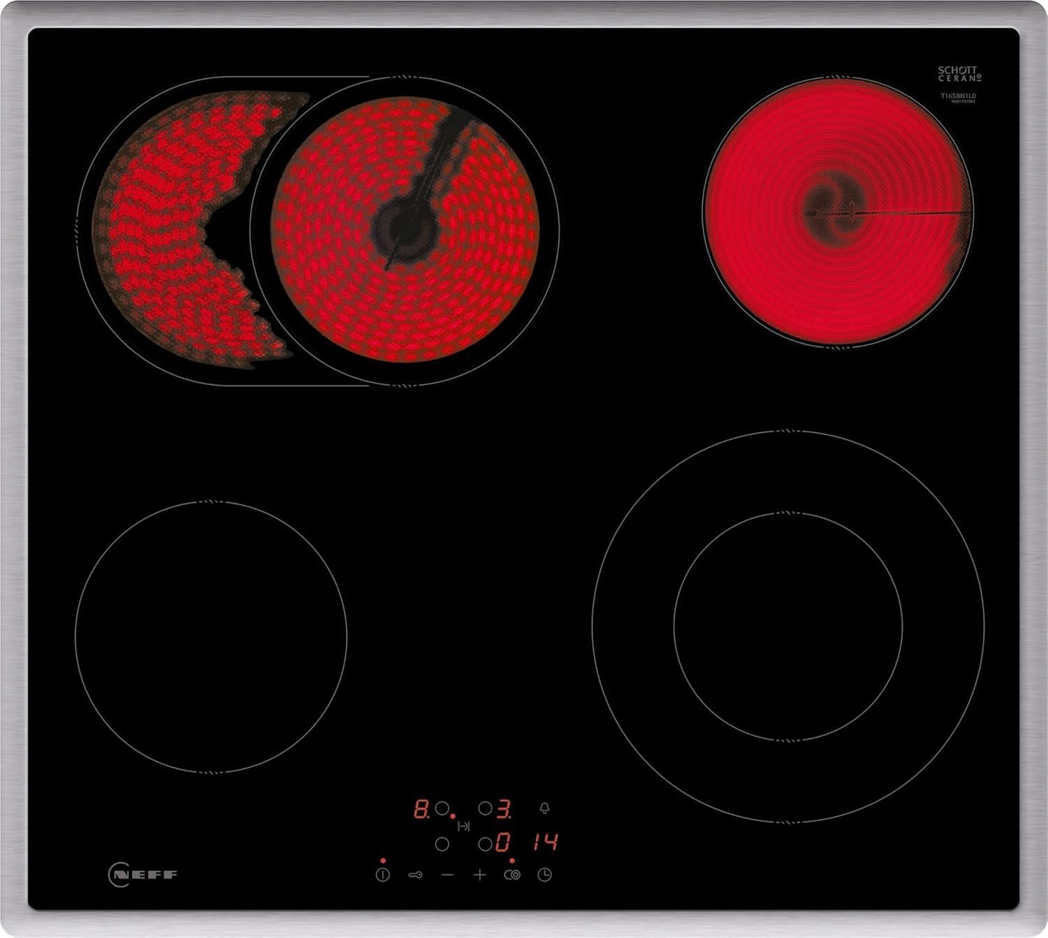 Eigenschaften "Neff T16SBN1L0 N50 Elektrokochfeld, Glaskeramik, 60 cm breit, Touch Control, 4 Kochzonen, 17 Leistungsstufen, Edelstahlrahmen"