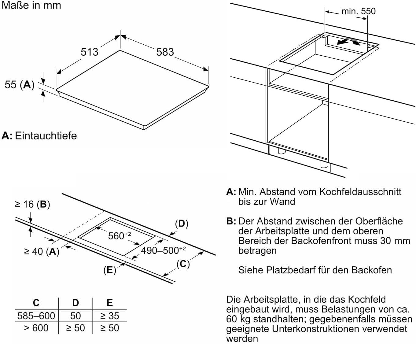 - Gerätehöhe über Arbeitsplatte 3,0 mm