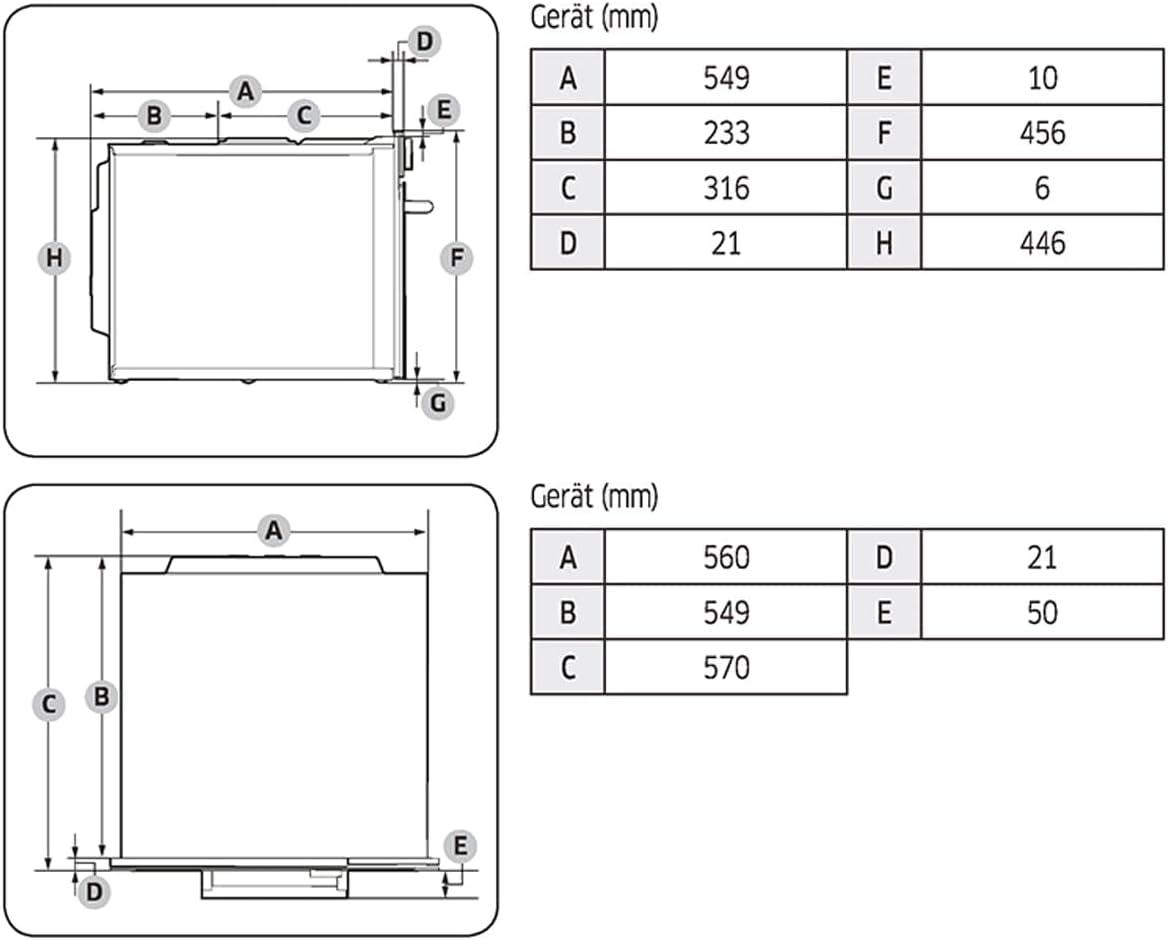 | Ofentüröffnung: | Drop-down-Öffnung |