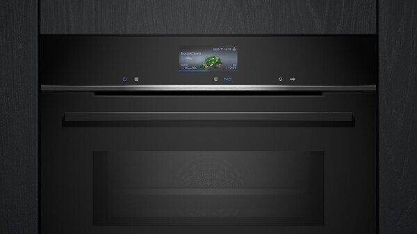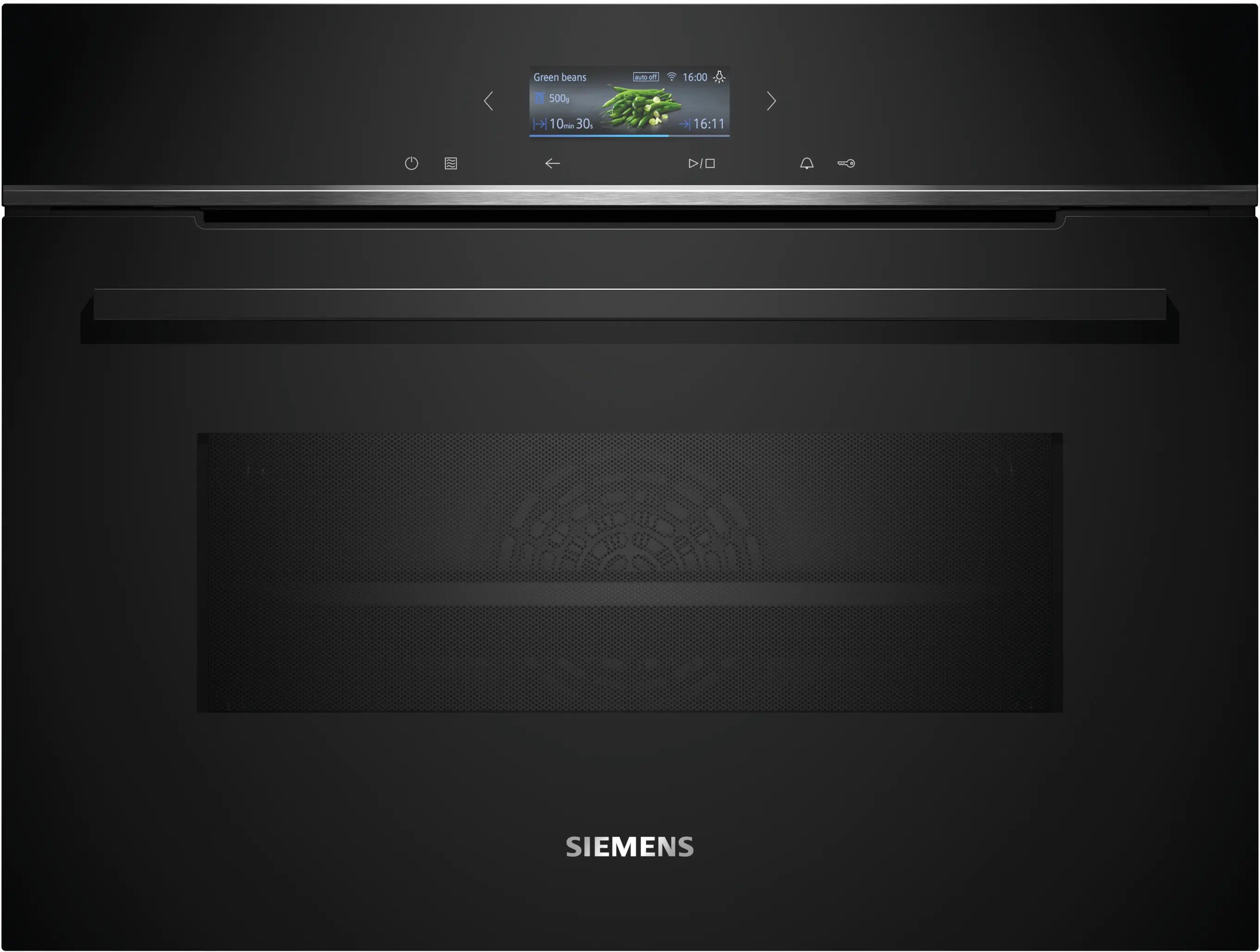 Produktinformationen "Siemens CM776GKB1 iQ700 Einbaukompaktbackofen mit Mikrowellenfunktion, 900 W, 59,4 cm breit, 45 L, 4D Heißluft, Grill, Home Connect, schwarz"