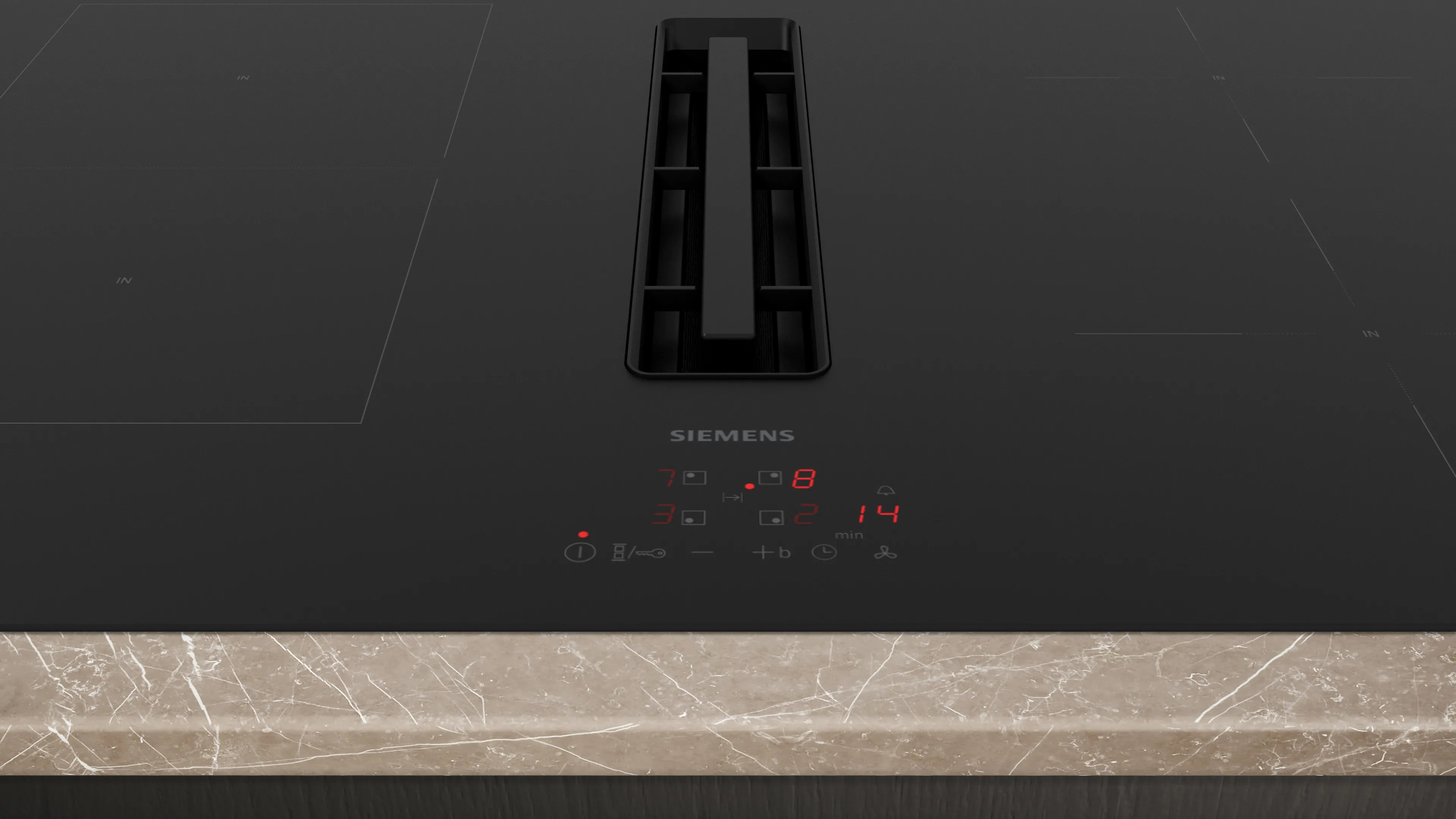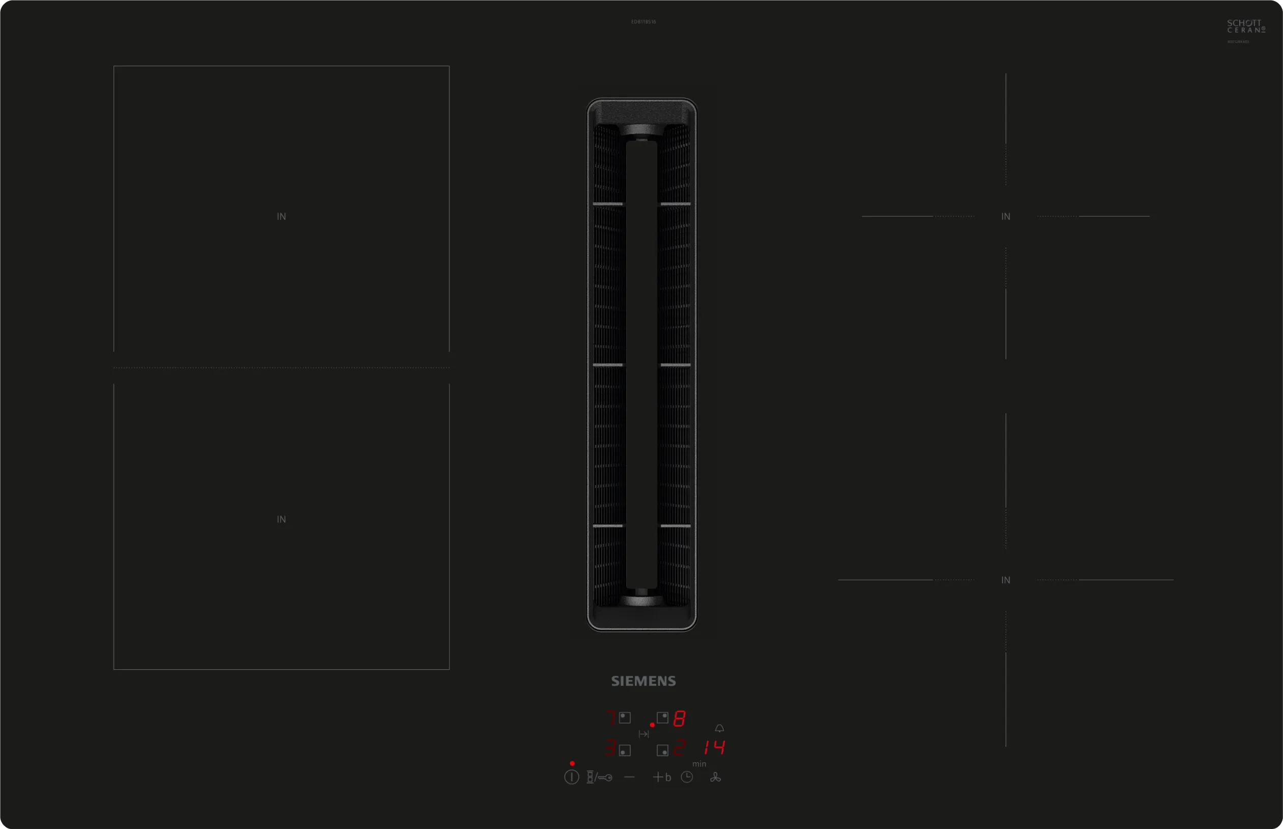 Siemens ED811BS16E iQ300 Induktionskochfeld mit Dunstabzug, 80cm breit, Rahmenlos aufliegend, schwarz