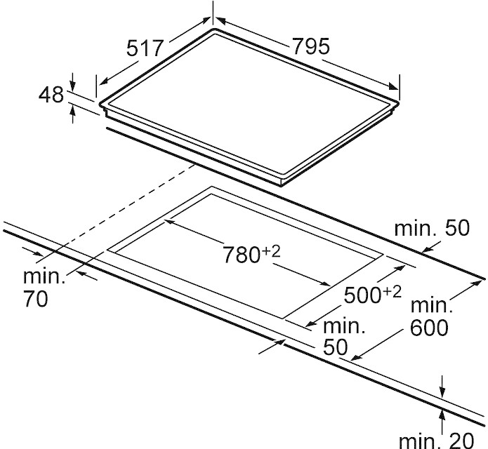 - Erforderliche Nischengröße (HxBxT mm): 48 x 780 x (500 - 502)
