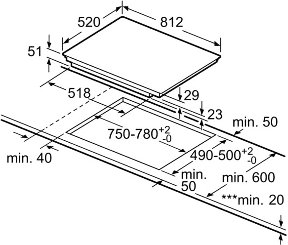 - Min. Arbeitsplattenstärke: 30 mm