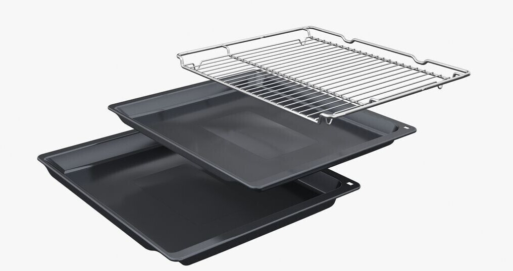 - Integriertes Zubehör: 1 x Backblech emailliert, 1 x Kombirost, 1 x Universalpfanne