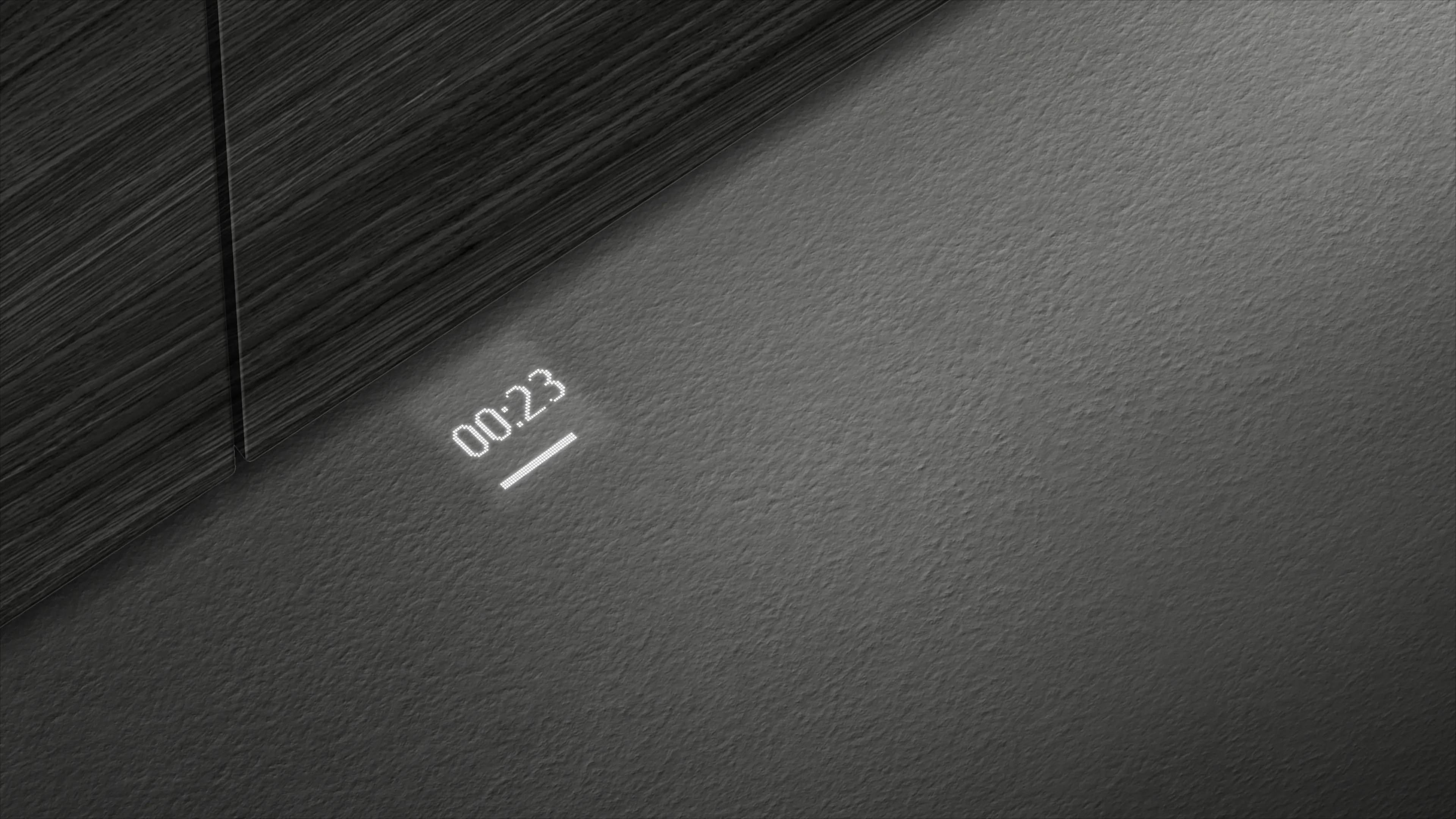 Wenn Sie die Tür Ihres Geschirrspülers öffnen, erwartet Sie ein leuchtendes Blau. Raffiniert angebrachte LEDs im oberen Bereich des Innenraums schalten sich automatisch ein, wenn Sie die Tür öffnen, und wieder aus, wenn Sie sie schließen.