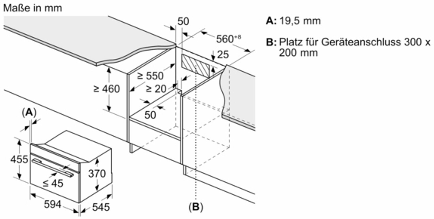 - Nischenbreite maximal 560 mm