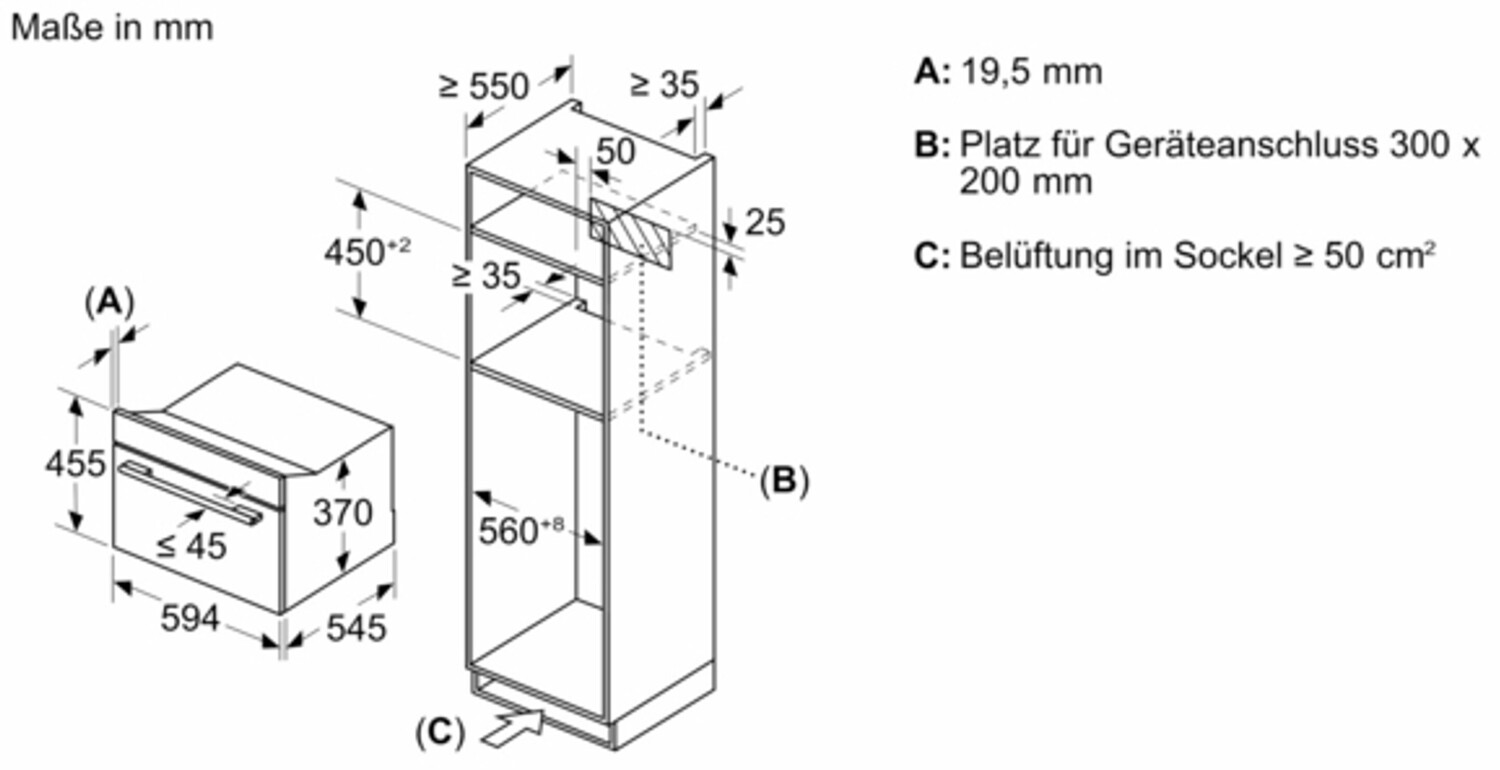 - Nischenhöhe maximal 450 mm